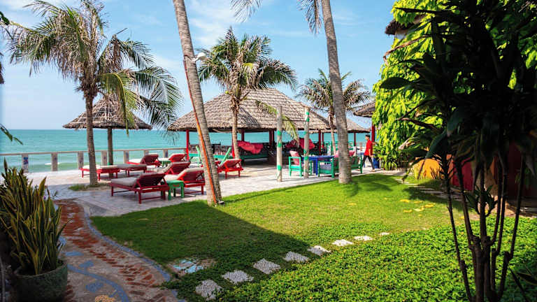 Das Full Moon Beach Resort befindet sich direkt am Strand von Mũi Né und bietet eine ideale Lage, um die wunderschöne Umgebung zu erkunden. Phan Thiết, das Zentrum der Region, ist weniger als 14 km entfernt und bietet eine Vielzahl von Einkaufs- und Unterhaltungsmöglichkeiten. Der Golfplatz Sea Links City ist ebenfalls in der Nähe und bietet Golfern eine großartige Gelegenheit, ihr Können zu zeigen.