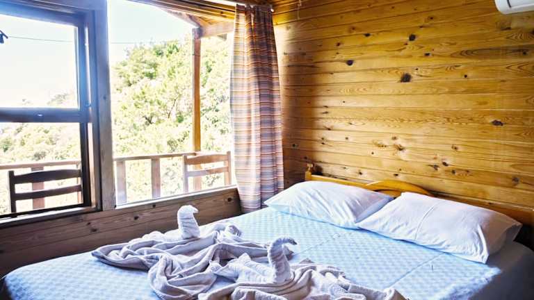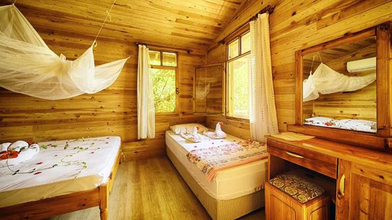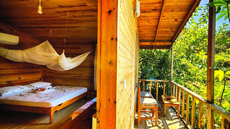Erleben Sie einen erholsamen Aufenthalt im Full Moon Camp im Kabak-Tal. Genießen Sie die Ruhe und den atemberaubenden Blick auf die Kabak-Bucht. Die Baumhäuser und Holzbungalows bieten Ihnen einzigartige Unterkünfte mit Balkon oder Terrasse. Starten Sie Ihren Tag mit einem reichhaltigen türkischen Frühstück und probieren Sie gesunde Gerichte der mediterranen Küche mit hausgemachtem Olivenöl und frischen Zutaten. Entspannen Sie am Außenpool und erkunden Sie die naturnahe Umgebung. Der Strand ist nur einen kurzen Spaziergang entfernt.