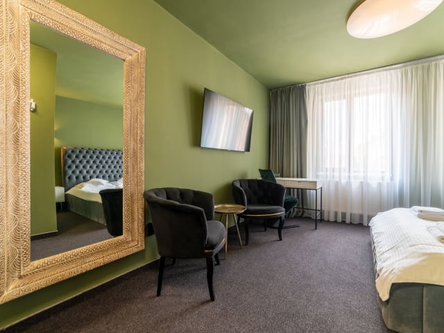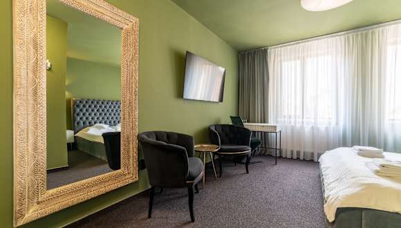 Das Hotel befindet sich im Herzen von Cluj Napoca, in einer Fußgängerzone nahe dem Unirii Platz. Die Umgebung bietet Zugang zu zahlreichen Cafés, Restaurants und Bars innerhalb eines Radius von 300 Metern. Ein Lebensmittelgeschäft ist nur 200 Meter entfernt. Der Cluj Flughafen liegt 9 km und der Bahnhof 1,5 km entfernt, die in etwa 15 Minuten erreichbar sind.