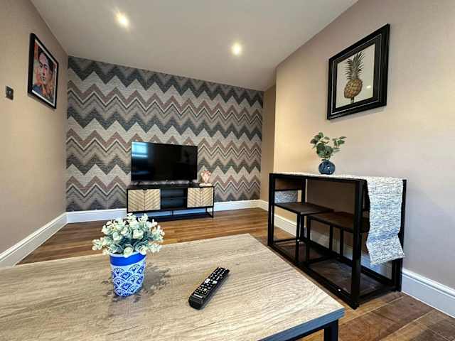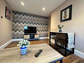 Die Ferienwohnung verfügt über ein Schlafzimmer, eine voll ausgestattete Küche mit Kühlschrank und Geschirrspüler sowie einen Flachbild-TV und einen Sitzbereich. Ein Badezimmer mit Dusche ist ebenfalls vorhanden. Handtücher und Bettwäsche werden bereitgestellt.
