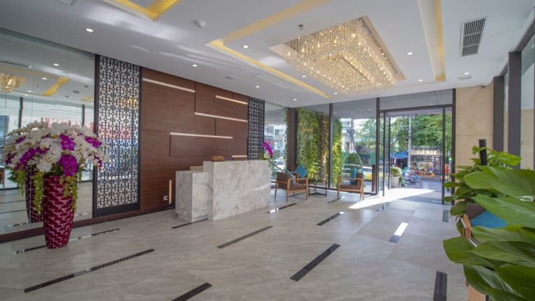 Das G8 Luxury Hotel and Spa Da Nang liegt in der Stadt Da Nang, nur 2,3 km vom Strand Thanh Binh entfernt. Das Stadtzentrum ist ebenfalls in der Nähe und das Einkaufszentrum Indochina Riverside Mall ist weniger als 1 km entfernt. Die zentrale Lage des Hotels ermöglicht es den Gästen, bequem die wichtigsten Sehenswürdigkeiten und Einkaufsmöglichkeiten zu erreichen.