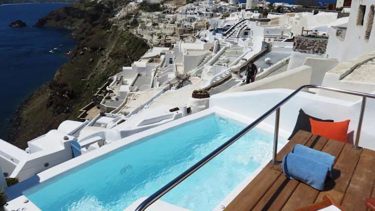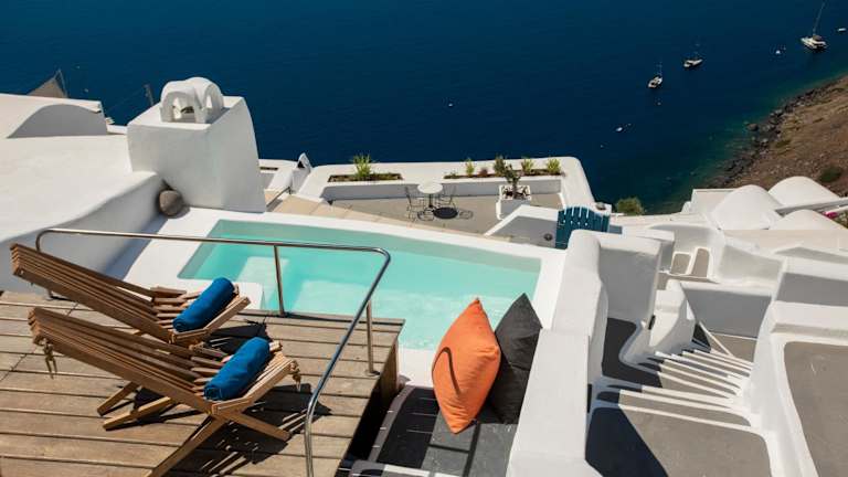 Das Gabbiano Traditional Cave Houses befindet sich auf einem natürlichen vulkanischen Felsen in der Nähe des Ortseingangs von Oia. Die Lage bietet eine uneingeschränkte Panoramaaussicht auf den Krater Caldera, die Ägäis und den Sonnenuntergang. In der Nähe sind die Hauptstraße, eine Bushaltestelle und ein Parkplatz zu finden.