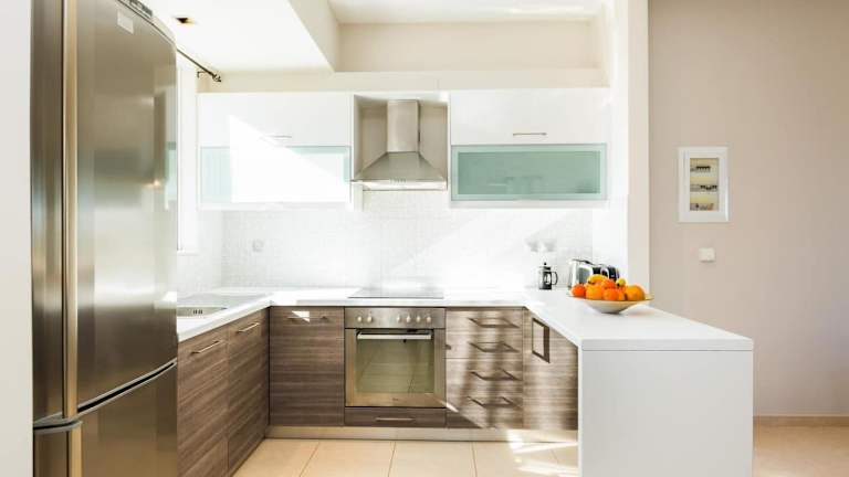 Die Ferienwohnung bietet eine Gemeinschaftsküche zur Selbstverpflegung, in der eine Küche mit Kühlschrank vorhanden ist.