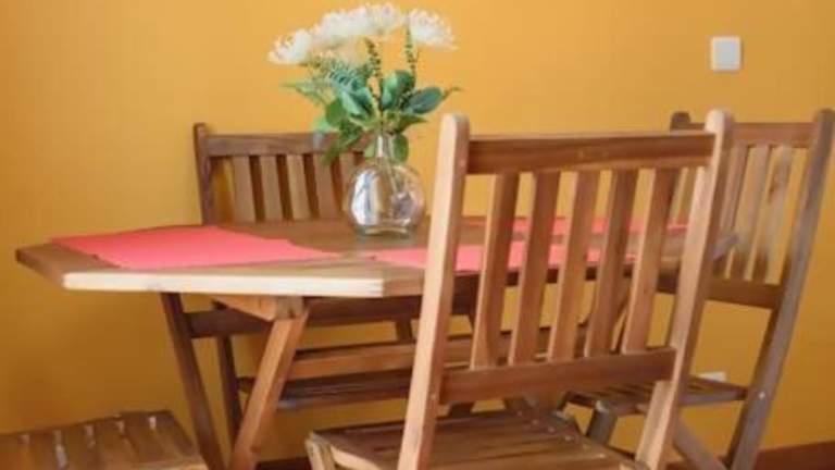 Die Ferienwohnung verfügt über ein Wohnzimmer mit einem TV sowie eine voll ausgestattete Küche.
