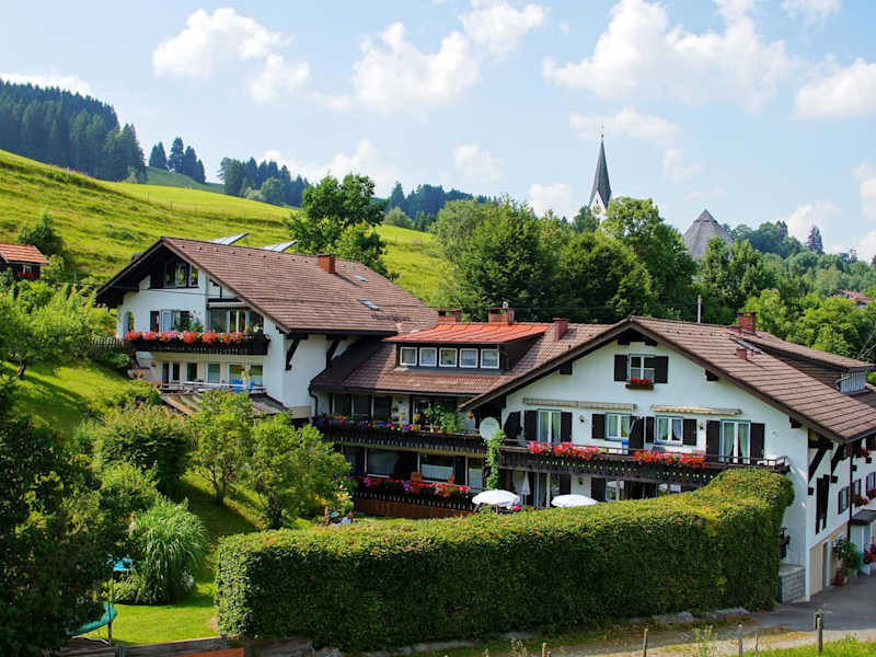 Die Gäste können verschiedene Aktivitäten in und um Blaichach unternehmen, wie Wandern, Skifahren und Fahrradfahren.