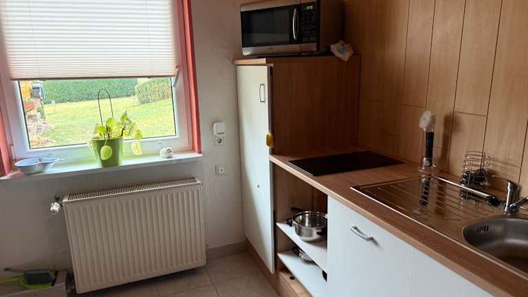 Die Ferienwohnung besteht aus einem Schlafzimmer, einem Wohnzimmer und einer gut ausgestatteten Küche, die mit einem Kühlschrank und einer Mikrowelle ausgestattet ist. Handtücher und Bettwäsche werden bereitgestellt. Ein Balkon ist ebenfalls vorhanden.