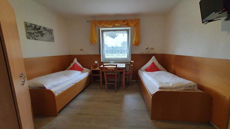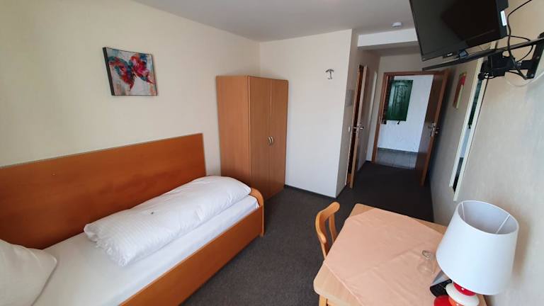Die 14 modernen Einzel- & Doppelzimmer verfügen über Sat-TV. Alle Zimmer haben zudem ein separates Bad mit Dusche & WC.