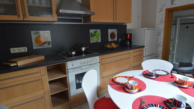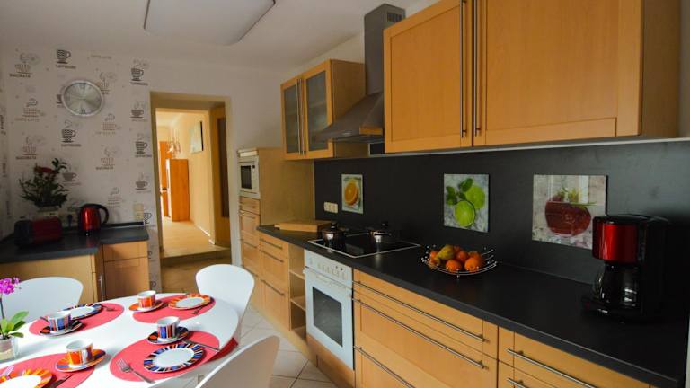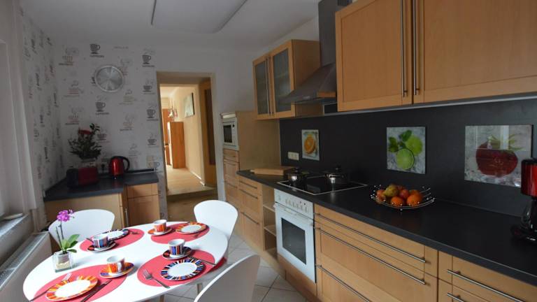 Das Gästehaus Fährmann verfügt über ein attraktives Apartment mit einer voll ausgestatteten Küche, die mit einem Geschirrspüler, einer Mikrowelle und einer Kaffeemaschine ausgestattet ist. Das Wohnzimmer bietet einen gemütlichen Raum zum Entspannen und ist mit einem internetfähigen Flachbild-TV ausgestattet. Die Schlafzimmer befinden sich auf der 1. Etage und im Dachgeschoss und bieten den Gästen Privatsphäre und Komfort. Im 2. Schlafzimmer steht ein weiterer TV zur Verfügung.