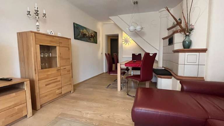 Das Gästehaus Fährmann in Vehra bietet seinen Gästen eine attraktive Unterkunft mit voll ausgestatteter Küche und gemütlichem Wohnzimmer. Die Schlafzimmer verteilen sich auf die 1. Etage und das Dachgeschoss und bieten zusätzlichen Komfort mit einem weiteren TV im 2. Schlafzimmer. Die Lage des Gästehauses ist ideal für Ausflüge in die nahe gelegenen Städte Erfurt und Weimar. Der Flughafen Erfurt-Weimar ist ebenfalls leicht zu erreichen.