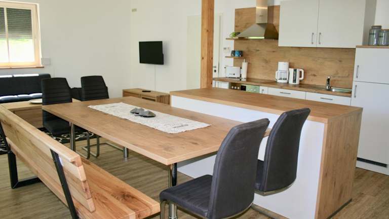 Die Ferienwohnung verfügt über zwei Schlafzimmer, ein Badezimmer, eine voll ausgestattete Küche, einen Essbereich, einen Flachbild-TV mit Satellitenkanälen sowie eine Terrasse mit Seeblick. Bettwäsche und Handtücher sind ebenfalls vorhanden.