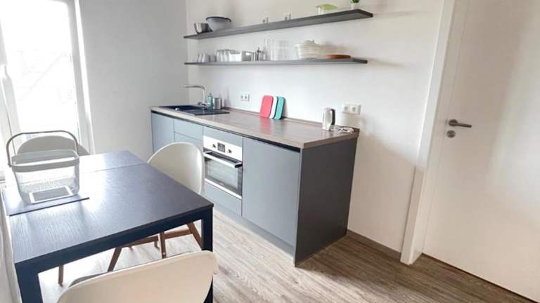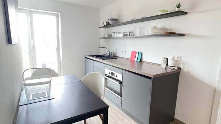 Die Zimmer sind mit einer voll ausgestatteten Küche, einem Esstisch, einem Flachbild-TV sowie einem eigenen Badezimmer ausgestattet. Ein Kühlschrank, eine Herdplatte, eine Kaffeemaschine und ein Wasserkocher sind ebenfalls vorhanden.