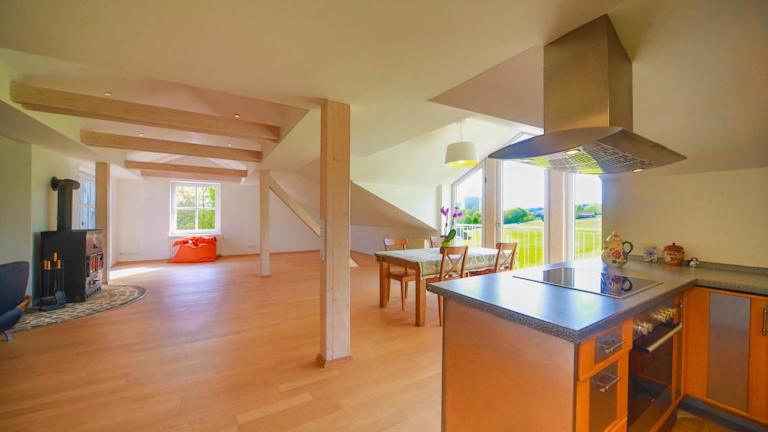 Die Ferienwohnung verfügt über eine voll ausgestattete Küche mit Kühlschrank, Geschirrspüler und Ofen. Sie besitzt ein Wohnzimmer, einen Essbereich, zwei Schlafzimmer und ein Badezimmer mit Bidet. Handtücher und Bettwäsche werden bereitgestellt.