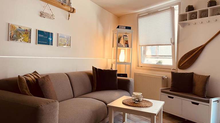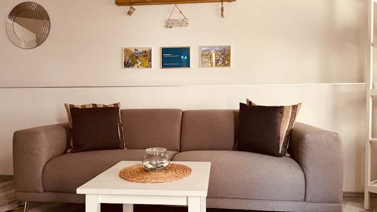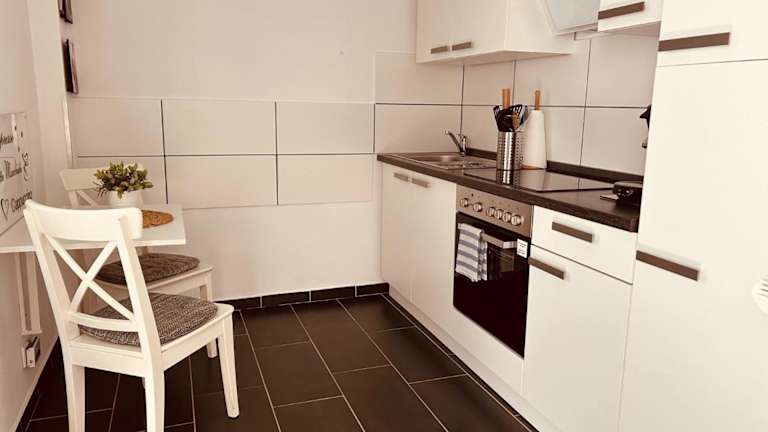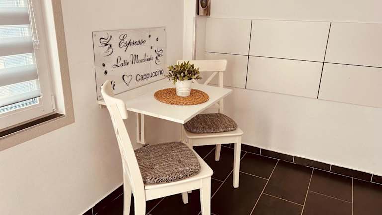 Die Ferienwohnung besteht aus einem Schlafzimmer, einem Wohnzimmer, einer voll ausgestatteten Küche mit Kühlschrank und Kaffeemaschine sowie einem eigenen Badezimmer mit Dusche und kostenlosen Pflegeprodukten. Handtücher und Bettwäsche werden zur Verfügung gestellt.