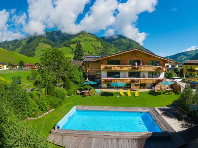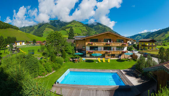 5 Ferienwohnungen von zwei bis 6 Personen. Ausgezeichnet mit 4 Edelweiß. Ein Familienbetrieb in zweiter Generation, geführt von Sandra und Sigi. Alle Bäder alle Küchen sind neu, die Wohnungen vermitteln Gemütlichkeit und Romantik durch sehr viel Holz.. Ihre Kinder bekommen einen der größten Spielplätz imTal, alle zusammen den geheizten Pool mit Liegewiese zum Abkühlen und Sie legen sich in die " Almruah" zum ruhigen, gemütlichen Entspannen.