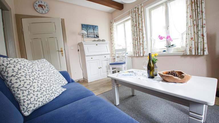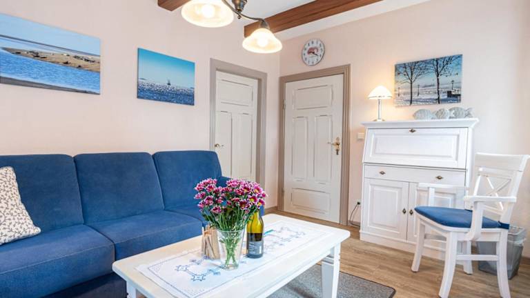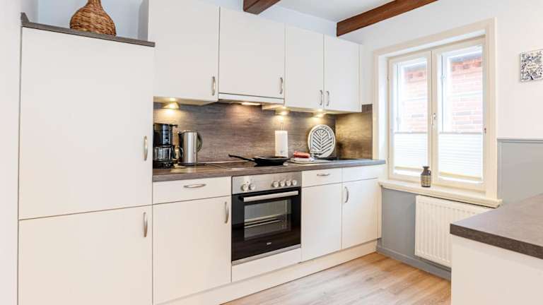 Die Ferienwohnung verfügt über ein Schlafzimmer, ein Badezimmer mit Dusche sowie eine gut ausgestattete Küche mit Kühlschrank und Geschirrspüler. Ein TV mit Satellitenkanälen steht ebenfalls zur Verfügung. Handtücher und Bettwäsche werden bereitgestellt.