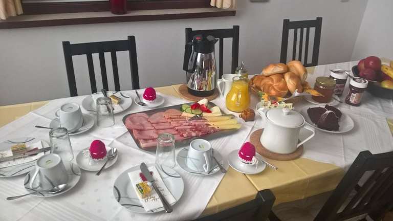 Das Gästehaus Rosl bietet keine Verpflegung vor Ort an, aber in der Umgebung gibt es eine Vielzahl von Restaurants und Cafés, in denen Sie lokale Spezialitäten und internationale Küche genießen können. Lassen Sie sich von den Gastgebern beraten, um die besten gastronomischen Optionen in der Nähe zu entdecken.