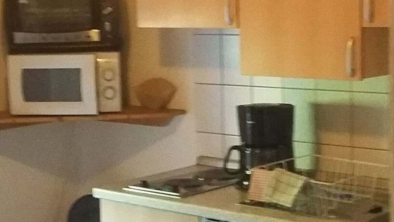 Die Gästehäuser sind mit einer Küche ausgestattet, die Kühlschrank, Ofen, Herdplatte und Kaffeemaschine beinhaltet.