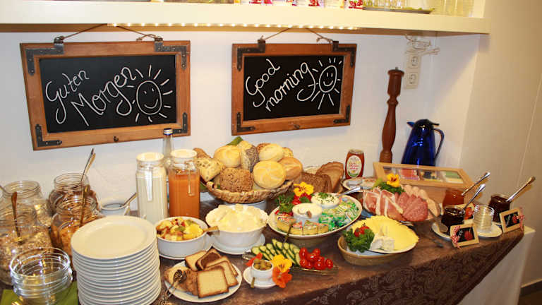 Unser reichhaltiges und schönes Frühstücksbuffet sorgt dafür, dass Sie einen guten Start in Ihren erlebnisreichen Tag haben.