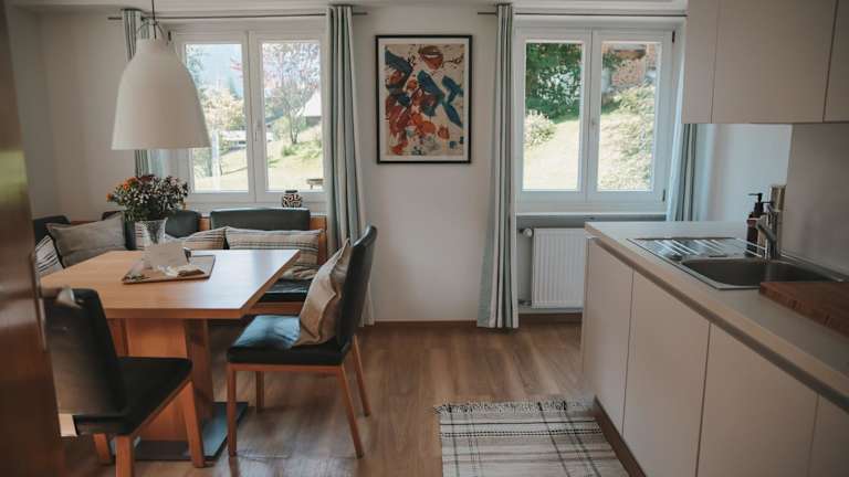 Wohnung Bergblick hat sehr großzügige Räumlichkeiten mit riesigem Balkon und Blick auf die Berge. Die Ausstattung ist phänomenal- hier fehlt wirklich nichts. Das Kücheninventar ist hochwertig mit allem was man zum Kochen brauchen könnte. Balkonmöbel, Liegen, Handtücher und.....alles da! Der Vermieter supernett und sympathisch- kurz es war ein toller Aufenthalt!