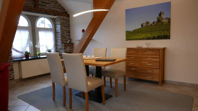 Das Hotel Weingut Clemens liegt in Ellenz-Poltersdorf an der Mosel und bietet eine idyllische Lage inmitten der Weinberge. Von hier aus können Sie die malerische Umgebung erkunden und die Schönheit der Moselregion genießen. Die mittelalterliche Stadt Cochem ist nur eine kurze Fahrt entfernt und bietet eine Vielzahl von Sehenswürdigkeiten und Aktivitäten.