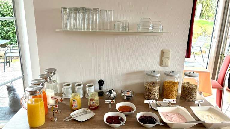 Starten Sie Ihren Tag mit einem köstlichen Frühstücksbuffet, das jeden Morgen von 08:00 bis 09:00 Uhr serviert wird. Bei schönem Wetter können Sie das Frühstück auch im sonnigen Garten genießen. Wenn Sie Lust auf eine kulinarische Entdeckungsreise haben, finden Sie verschiedene Restaurants im nahegelegenen Stadtteil Hambach.