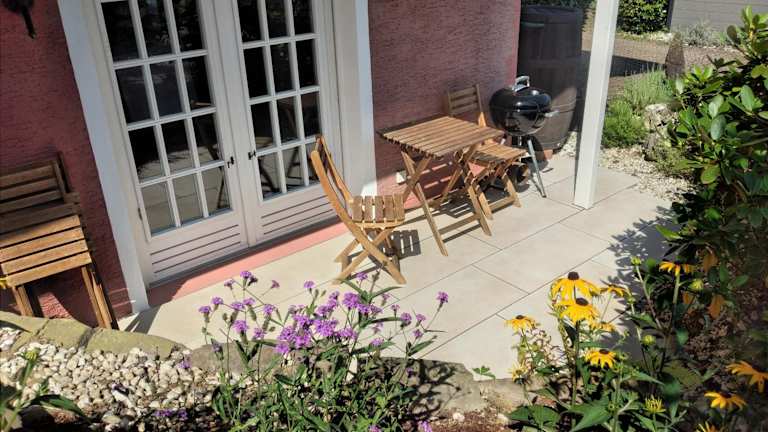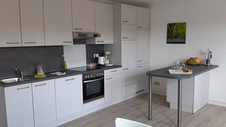 Die Ferienwohnung verfügt über ein Schlafzimmer, ein Wohnzimmer und ein Badezimmer mit Dusche. Eine gut ausgestattete Küche ist vorhanden, die mit einem Kühlschrank und einem Geschirrspüler ausgestattet ist. Zu den Annehmlichkeiten gehören ein Flachbild-TV sowie die Bereitstellung von Handtüchern und Bettwäsche. Die Unterkunft bietet zudem eine Terrasse mit Gartenblick.