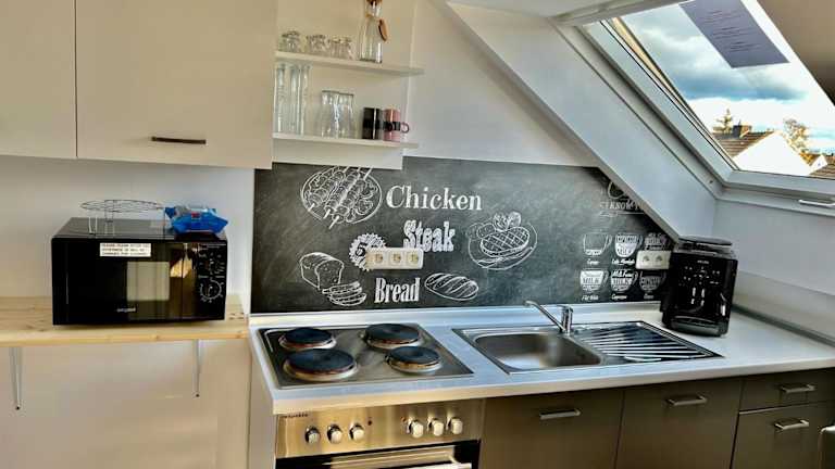 Es sind Einrichtungen wie ein Kühlschrank, eine Mikrowelle, eine Kaffeemaschine und ein Wasserkocher vorhanden, die sich für die Selbstverpflegung eignen.
