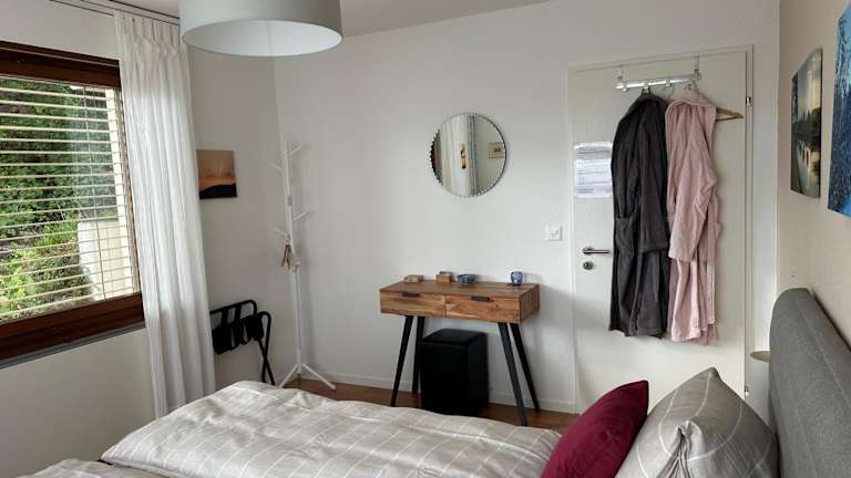 Das Gästezimmer Erlinsbach bei Aarau, zwischen Aare und Jura, ist eine Privatunterkunft, die gemütliche Zimmer mit Handtüchern und Bettwäsche bietet. Genießen Sie den Komfort und die Privatsphäre dieser Unterkunft, die sich ideal für einen erholsamen Aufenthalt eignet.