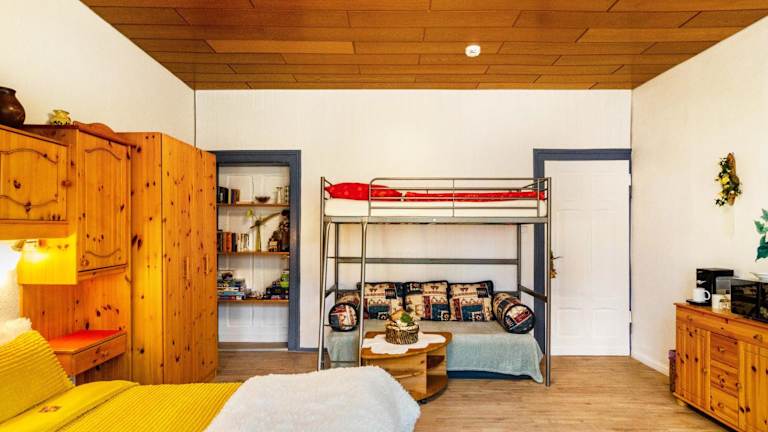 Das Gästezimmer für 3 Personen bietet Übernachtungsmöglichkeiten für bis zu drei Personen. Die Unterkunft beinhaltet Annehmlichkeiten wie kostenfreies WLAN und einen Fernseher. Das Ferienhaus verfügt über ein Schlafzimmer und ein Badezimmer.