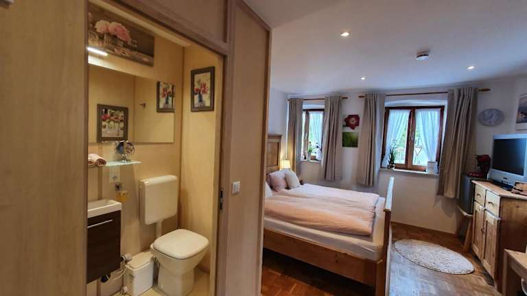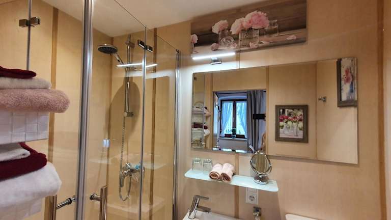 Die Ferienwohnung verfügt über ein Schlafzimmer und ein Badezimmer mit Dusche. Zur Ausstattung gehören ein Satelliten-Flachbild-TV sowie Handtücher und Bettwäsche.