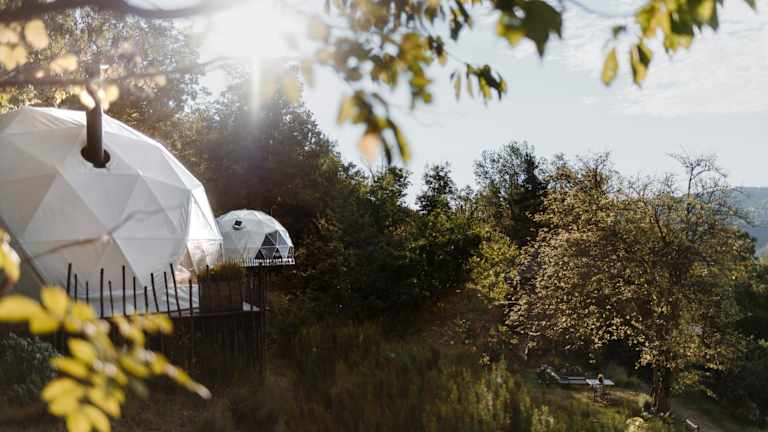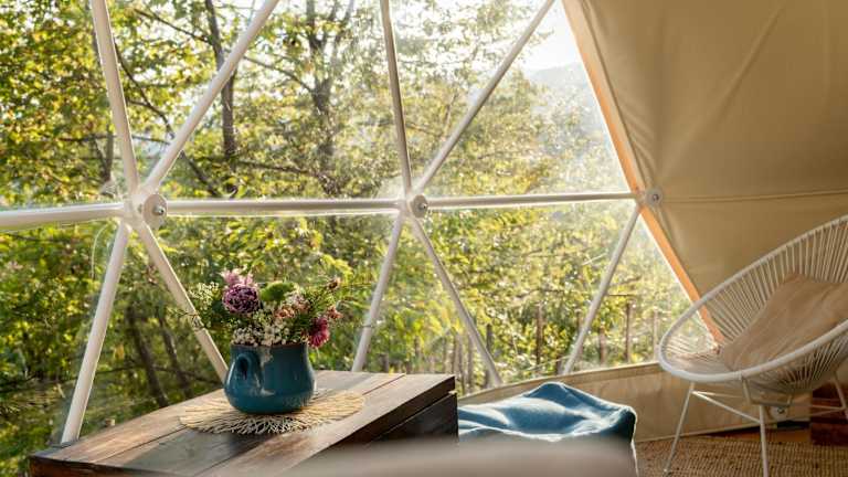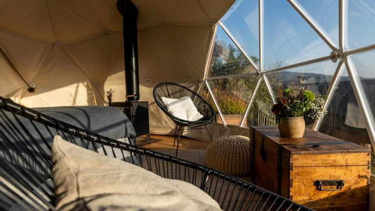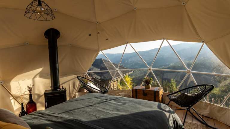 Das Gaia's Spheres bietet ein einzigartiges Übernachtungserlebnis in einem luxuriösen Zelt. Die Unterkunft ist mit hochwertigen Handtüchern und Bettwäsche ausgestattet, um Ihnen den maximalen Komfort zu bieten. Das Zelt verfügt auch über eine Terrasse, auf der Sie sich entspannen und die Natur genießen können.