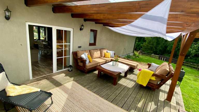 Das Gajówka bietet einen Kinderspielplatz und einen Garten, in dem Sie sich entspannen können. Eine Sauna steht ebenfalls zur Verfügung. In der Umgebung können Sie wandern, angeln oder radfahren und die malerische Landschaft genießen.