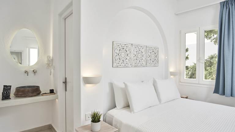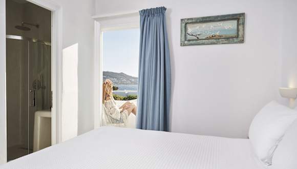Das Galation Hotel liegt nur 300 m vom Strand Agios Charalabos und dem Zentrum von Mykonos-Stadt entfernt. Die Lage ermöglicht es den Gästen, die Schönheit der Insel zu Fuß zu erkunden und gleichzeitig die Nähe zu den beliebten Stränden Megali Ammos und Agia Anna zu genießen. Die berühmten Windmühlen von Mykonos sind ebenfalls in der Nähe. Der Flughafen Mykonos ist nur 2 km entfernt und kann gegen Gebühr mit dem Flughafentransfer des Hotels erreicht werden.