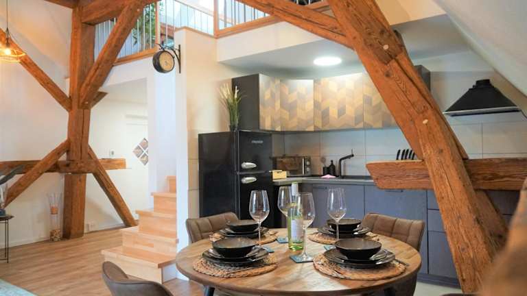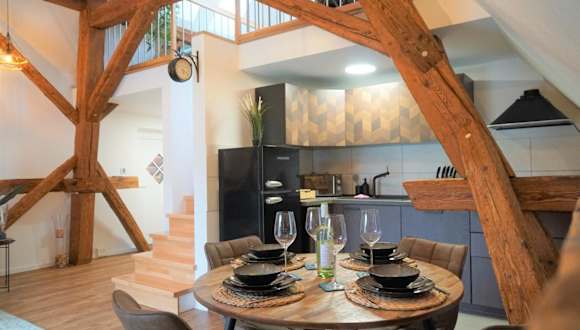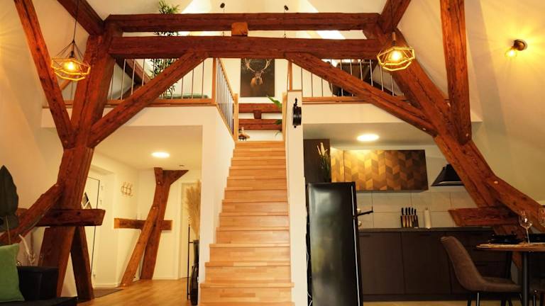 Die Galerie-Wohnung bietet Übernachtungsmöglichkeiten in einem ruhigen Umfeld und ist ideal für Familien oder Gruppen. Die Unterkunft verfügt über einen Balkon, kostenlosen WLAN-Zugang und einen Privatparkplatz. Die Gestaltung der Wohnung gewährleistet eine Nichtraucherumgebung und es sind keine Feiern wie Junggesellenabschiede gestattet. Der Check-in ist ab 15:00 Uhr möglich und der Check-out bis 10:00 Uhr erforderlich.