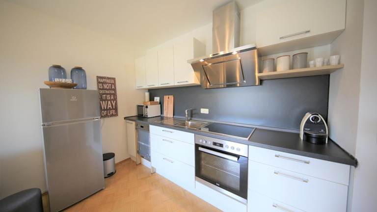 Die Wohnung verfügt über ein Schlafzimmer, eine Küche, die mit einem Kühlschrank und Geschirrspüler ausgestattet ist, sowie einen Flachbild-TV und einen Sitzbereich. Das Badezimmer ist mit einer Badewanne ausgestattet. Handtücher und Bettwäsche werden zur Verfügung gestellt.