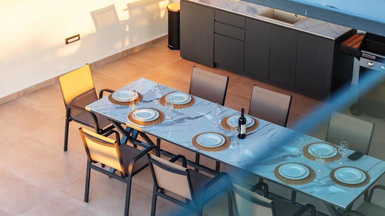 Die klimatisierte Villa umfasst 3 Schlafzimmer, ein Wohnzimmer und 3 Badezimmer mit Dusche und kostenlosen Pflegeprodukten. Handtücher und Bettwäsche sind ebenfalls verfügbar.
