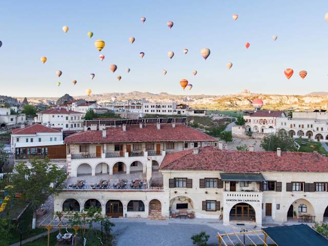 Das Garden Inn Cappadocia in Göreme bietet eine ideale Unterkunft für Reisende, die die Schönheit von Cappadocia erkunden möchten. Mit einem freundlichen und zuvorkommenden Service, komfortablen Zimmern und einer Vielzahl von Annehmlichkeiten wie einem Restaurant, einem Fahrradverleih und einem Kinderspielplatz ist das Hotel der perfekte Ausgangspunkt für Ihren Aufenthalt. Genießen Sie die Nähe zu Sehenswürdigkeiten wie dem Freilichtmuseum Zelve und der Burg Uchisar und lassen Sie sich von der atemberaubenden Landschaft verzaubern.