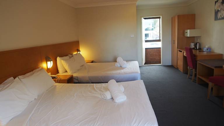 Die Zimmer im Garden Lodge Sydney Hotel sind mit modernen Annehmlichkeiten ausgestattet, um Ihren Aufenthalt so angenehm wie möglich zu gestalten. Jedes Zimmer verfügt über einen Balkon, einen 40-Zoll-LED-TV, einen Laptopsafe, einen Kühlschrank sowie Kaffee- und Teezubehör. Alle Zimmer haben ein eigenes Bad, und einige bieten sogar eine Whirlpool-Badewanne.