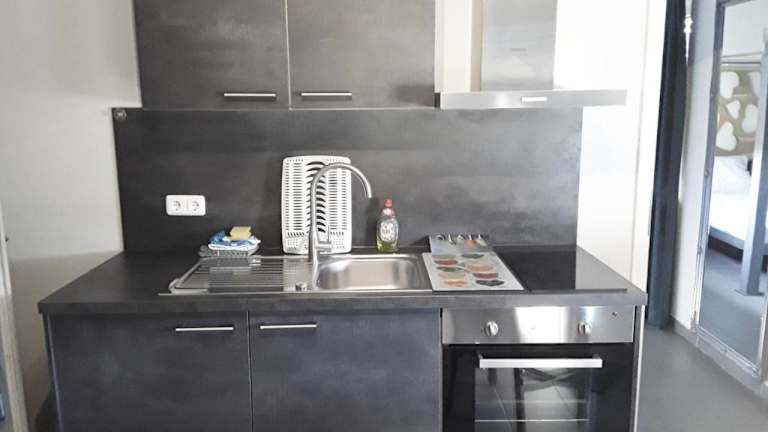 Die Ferienwohnung besteht aus einem Schlafzimmer, einem Wohnzimmer und einer voll ausgestatteten Küchenzeile, die mit einem Kühlschrank und einer Kaffeemaschine ausgestattet ist. Das Badezimmer ist mit einer Dusche ausgestattet. Handtücher und Bettwäsche werden bereitgestellt.