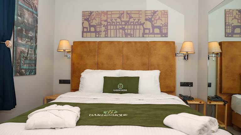 Die Zimmer im Gardenmode Airport Hotel sind mit einem Wasserkocher, Klimaanlage, Safe und Flachbild-TV ausgestattet. Einige Zimmer bieten zusätzlich einen Balkon.