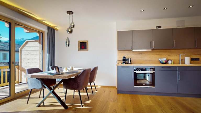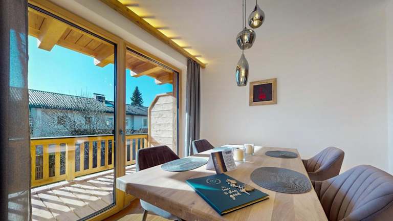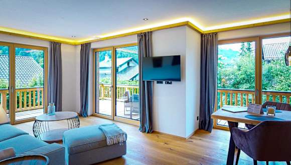 Garmisch Chalets - Wohnung Riessersee bietet einen Balkon mit Bergblick und ist ideal für einen Aufenthalt in der Natur.