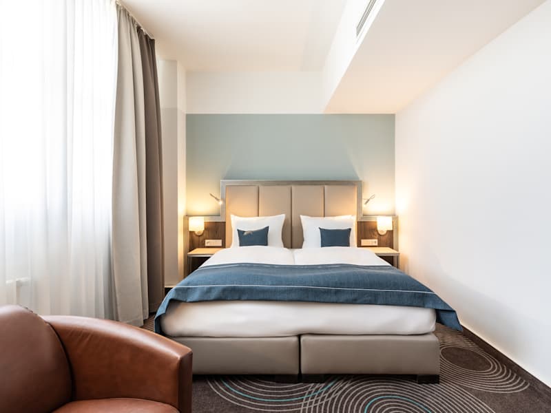Das Hotel liegt mitten im Stadtzentrum Essen, gegenüber dem Hauptbahnhof und am Beginn der Einkaufsstraße und der Fußgängerzone. Die Anbindung an den öffentlichen Nah- und Fernverkehr liegt direkt vor der Tür. Die Messe Essen befindet sich in 3 km Entfernung vom Hotel, zum Flughafen Düsseldorf sind es 25 km.