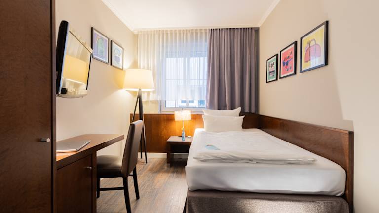 Unsere Zimmer bieten Ihnen, ob allein oder zu zweit unterwegs, einen behaglichen Rückzugsort für einen rundum entspannten Aufenthalt. Zur Ausstattung gehören ein praktischer Arbeitsplatz, ein Kleiderschrank, ein Satelliten-Flachbild-TV sowie ein eigenes Badezimmer.