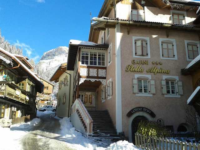 Das Garnì Stella Alpina befindet sich in der verkehrsberuhigten Zone von Canazei, nur 300 Meter von der Seilbahn Belvedere entfernt.