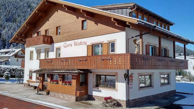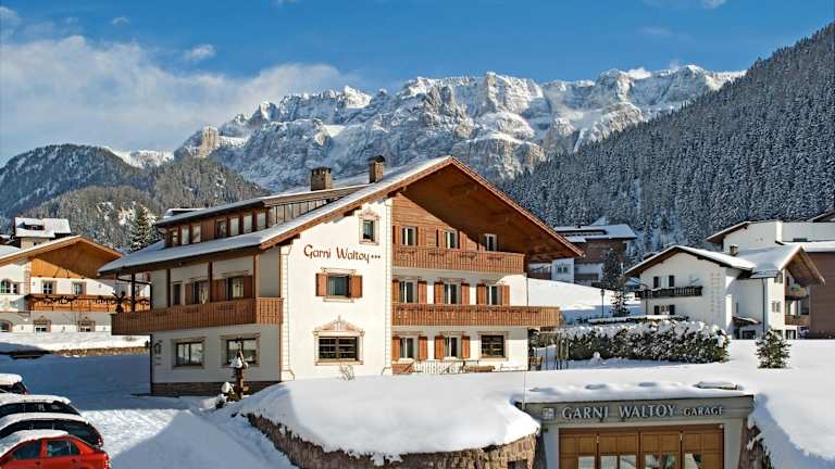 Das Hotel Garni Waltoy befindet sich in Wolkenstein in Gröden, nur 6 km vom Saslong entfernt. Die Lage des Hotels bietet einen atemberaubenden Blick auf die umliegenden Berge. In der Umgebung gibt es viele Möglichkeiten zum Wandern und Skifahren. Der Sellajoch und das Pordoijoch sind ebenfalls leicht zu erreichen. Der Flughafen Bozen liegt nur 46 km entfernt.