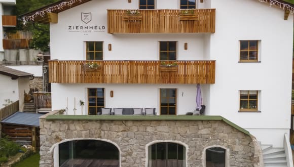 Unser Garni Ziernheld befindet sich in einer einmalig schönen Panoramalage im Herzen von Burgeis im Obervinschgau. Freuen Sie sich auf eine stressfreie und erholsame Zeit bei uns. Auf Sie warten liebevoll eingerichtete Zimmer und Appartements im 60er/70er jahres Stil, alle sind ausgestattet mit Dusche, WC, TV, Telefon und Balkon. Außerdem können Sie Ihr Auto in einem offenen, aber überdachten Parkplatz parken.
