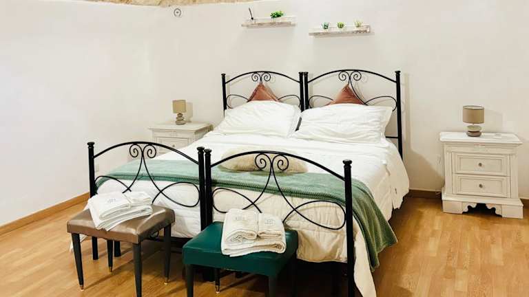 Das klimatisierte Gasparro House verfügt über zwei Schlafzimmer, ein gemütliches Wohnzimmer und eine voll ausgestattete Küche mit Kühlschrank und Kaffeemaschine. Das Ferienhaus verfügt auch über ein Badezimmer mit Bidet und Dusche. Handtücher und Bettwäsche werden gestellt, um den Gästen einen komfortablen Aufenthalt zu ermöglichen.