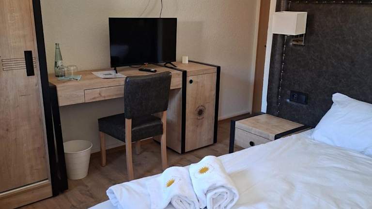 Die Zimmer im Hotel Sonne Todtnau sind komfortabel und bieten einen herrlichen Blick auf die Berge. Jedes Zimmer verfügt über einen Schreibtisch, eine Terrasse mit Stadtblick und ein eigenes Badezimmer. Ein Flachbild-TV, Bettwäsche und Handtücher sind ebenfalls vorhanden. Zur weiteren Ausstattung gehört ein Kleiderschrank.