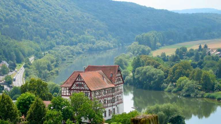 Das Gasthaus Zum güldenen Rößlein befindet sich in Homburg am Main, einem idyllischen Ortsteil von Markt Triefenstein. Die Lage zwischen dem Spessart und dem Odenwald bietet zahlreiche Möglichkeiten für Wanderungen und Radtouren in der umliegenden Natur. Die Autobahn A3 ist nur 5 Minuten entfernt und der Flughafen Frankfurt ist in 80 km erreichbar.