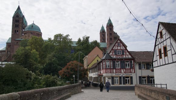 Das Gasthaus zum Halbmond befindet sich in Speyer, nur 50 m vom berühmten Speyerer Dom entfernt. Die Lage in einem historischen Fachwerkhaus verleiht dem Hotel einen besonderen Charme. Die malerische Fußgängerzone Maximilianstraße, mit ihren zahlreichen Geschäften und Restaurants, ist nur eine Gehminute entfernt. In der Nähe finden Sie auch das mittelalterliche Alte Tor und das Historische Museum der Pfalz. Der Bahnhof Speyer ist 1,5 km vom Hotel entfernt.